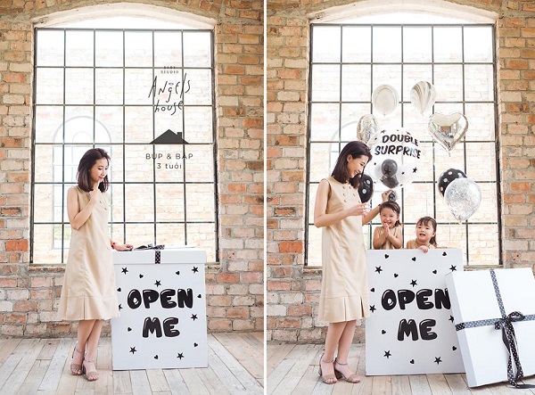 Ê kíp có hẳn studio set up với những khung cảnh mới lạ, “tây tây” và đặc biệt, đầy ắp những phụ kiện chụp ảnh hết sức dễ thương mà không hề “sến như con hến”, có thể đáp ứng được cho cả bé trai, bé gái và cả gia đình nhỏ nhỏ đến gia đình to to.